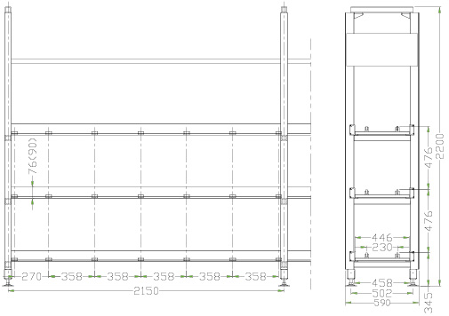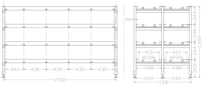 ● 主要尺寸:1128×1389×2150(寬×高×柱距),345—344—344—344(層間距)
